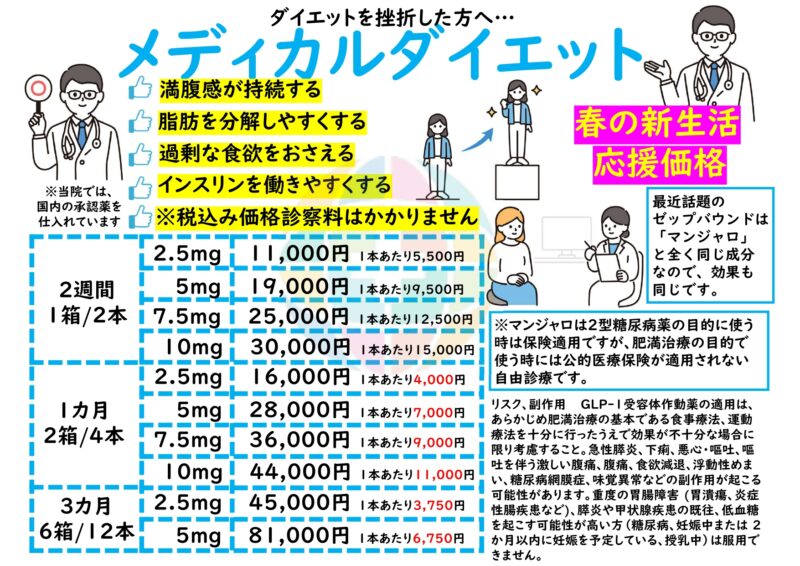 春の新生活応援価格▽メディカルダイエット「マンジャロ」 マンジャロ値段【2.5㎎3750円~・5㎎6750円~】