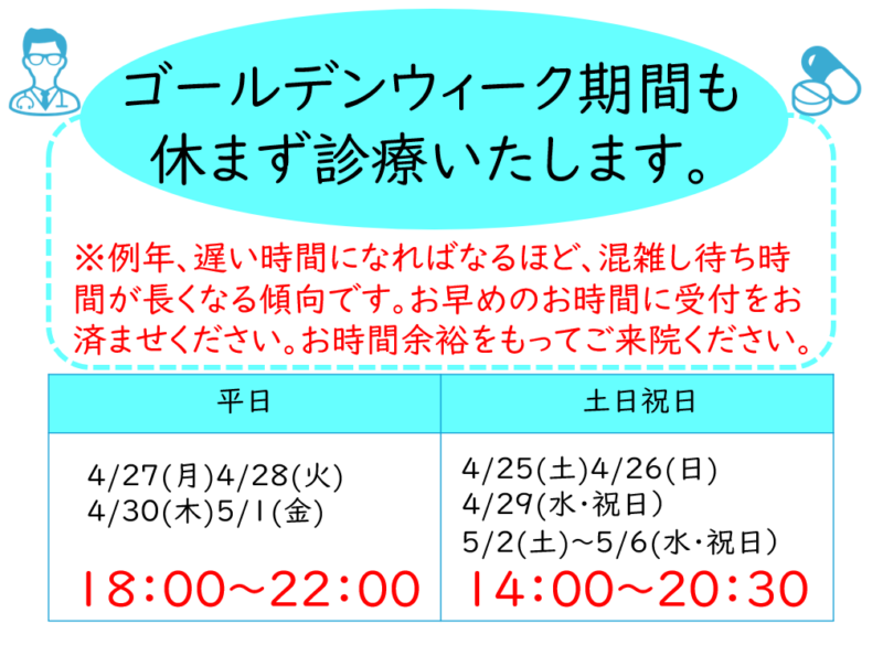 ゴールデンウィーク期間の診療について